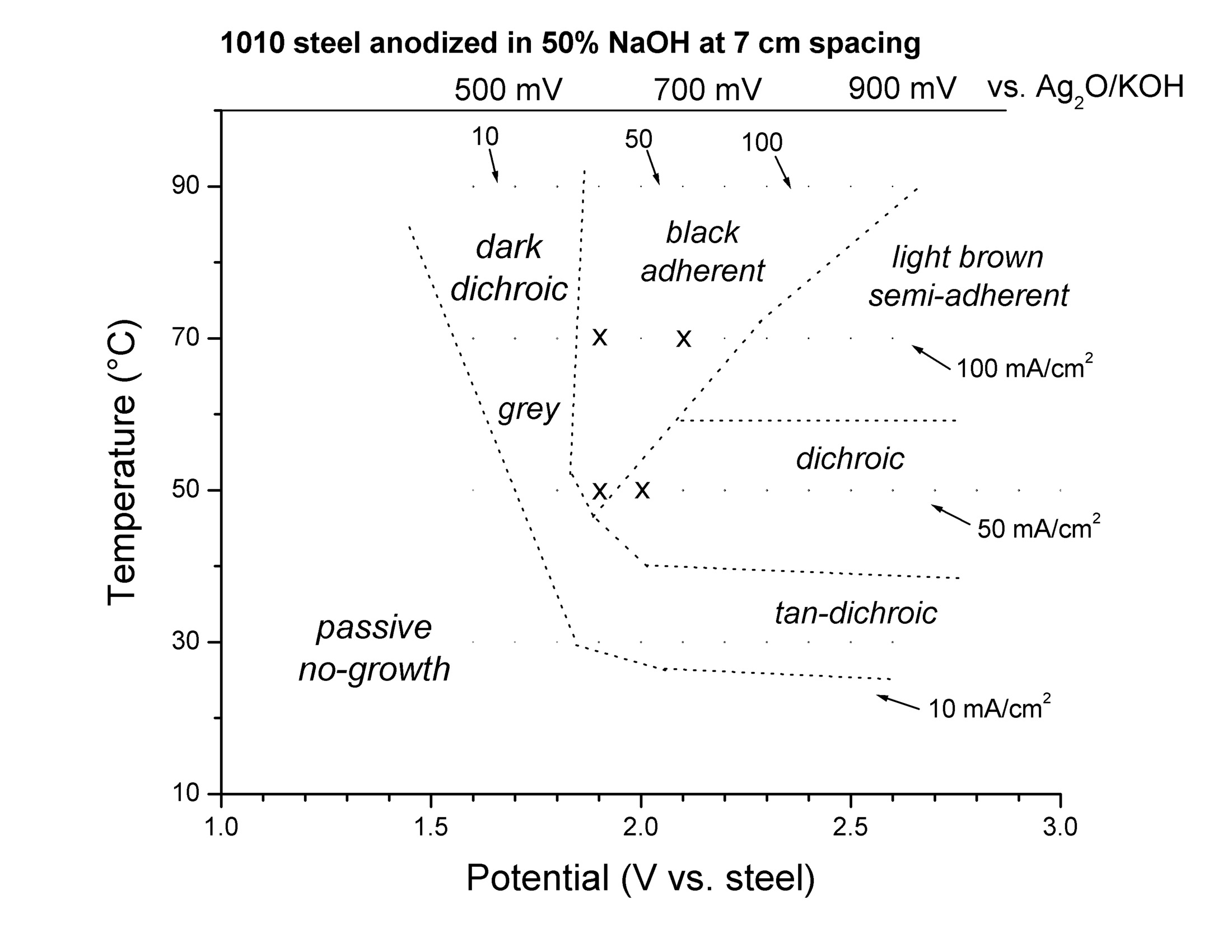The steelanodizing can provide a large variety of different oxide films, depending on the temperature and the applied voltage. (Fig 1 in Burleigh et al [3]). |